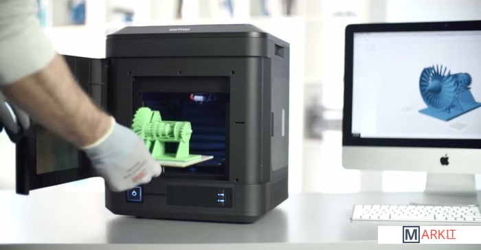 Основной особенностью модели станет наличие двух экструдеров, что позволит существенно ускорить скорость печати, а также печатать сразу несколькими цветами. Также стоить отметить, что создатели наградили принтер закрытой камерой, это позволит создавать сложные модели, которые не будет трескаться и деформироваться. Подходит для печати жестких и движущихся объектов.Для печати используется фирменный материал линейки Z-Ultrat plus (картридж).